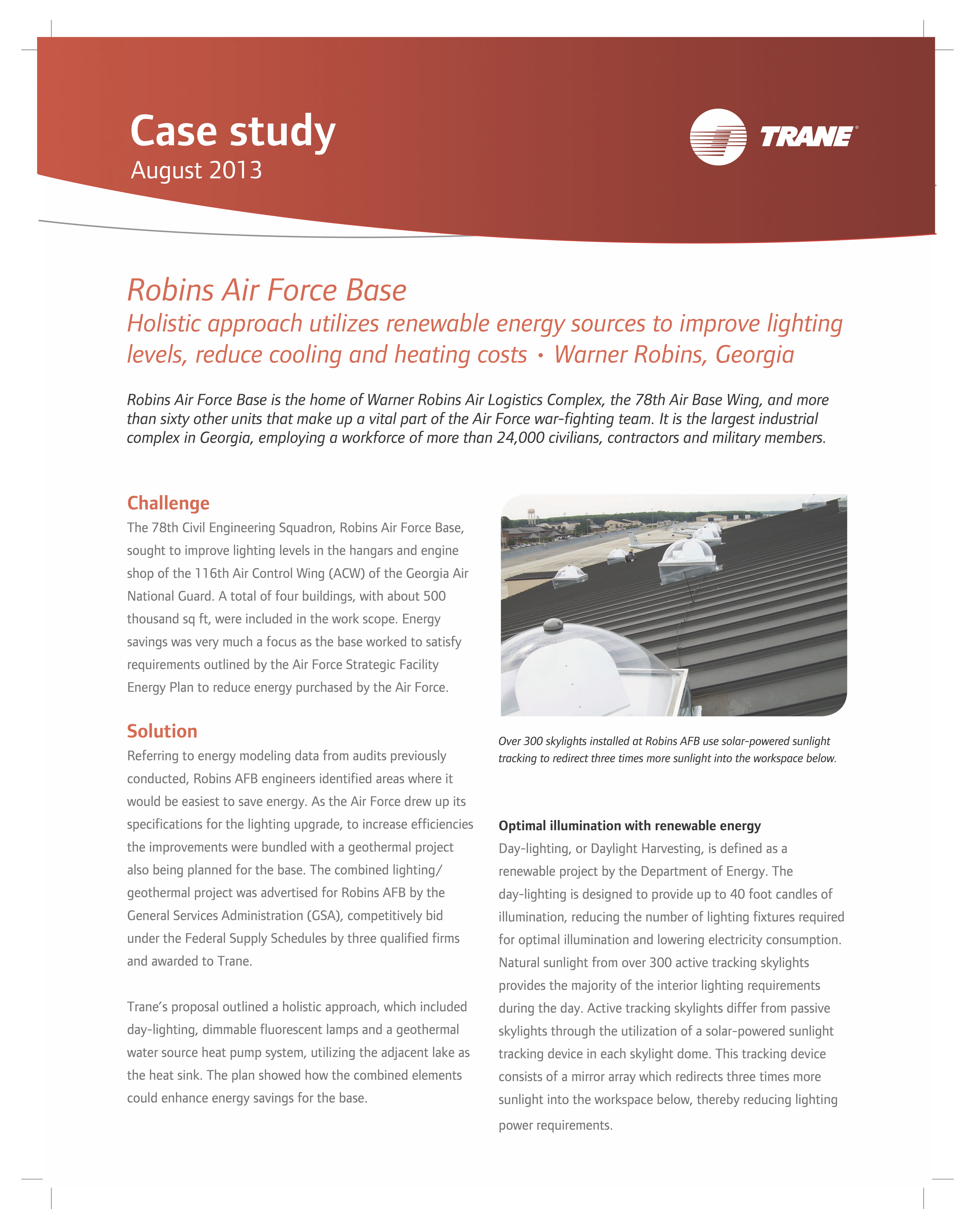 Robins Air Force Base made the command decision to take a holistic approach to utilize renewable energy, plans to install a geothermal system to reduce cooling and heating costs were then developed.